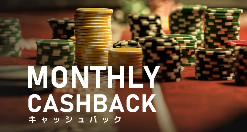 - 月間キャッシュバックは負けた分を翌月に取り返せる安心設計