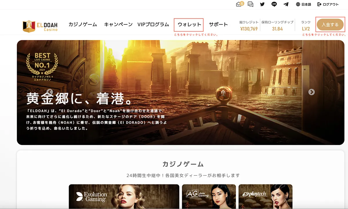 当サイトからエルドアカジノを開く
