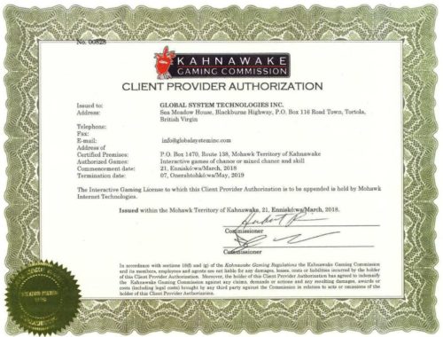 - KAHNAWAKE GAMING COMMISSION(カナダ・カーナワキ先住民族によるライセンス)