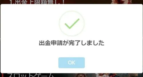 入出金履歴のステータスが「処理完了」に変わったら出金は完了です。