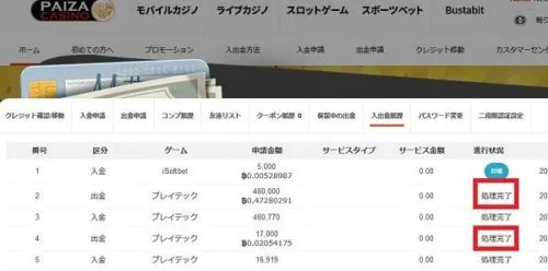 入出金履歴のステータスが「処理完了」に変わったら出金は完了です。